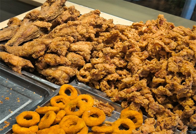 聚香婆香骨炸雞還注重產(chǎn)品的多元化,菜單上涵蓋了各類特色小吃,如香辣雞翅,雞翅表皮炸至金黃微焦,香辣調(diào)料均勻附著,一口咬下,香辣味瞬間刺激味蕾;還有酥脆的薯?xiàng)l,精選優(yōu)質(zhì)土豆,炸制后外脆里綿,搭配番茄醬或特色調(diào)味粉,深受消費(fèi)者喜愛。
