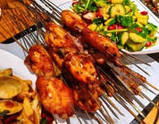 喜相聚燒烤門店還提供有各式烤串,食材都串在竹簽上,在炭火上進行烤制,外焦里嫩,香味撲鼻,吃后耐人尋味。燒烤的價格不貴,可以進行多種菜品混合搭配,一次可以滿足多樣的胃需求,約見朋友、家人聚餐、同學聚會等都可以。